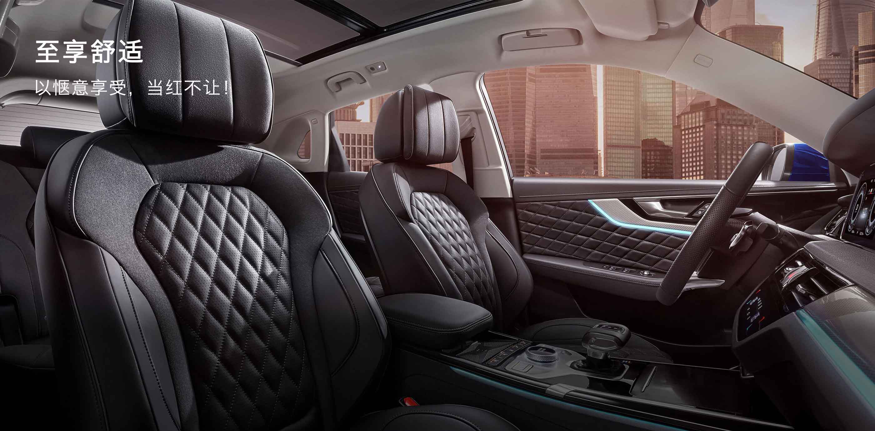 Nappa真皮搭配Alcantara材质座椅、航空级睡眠头枕、座椅加热和通风功能,带来惬意驾乘时光。